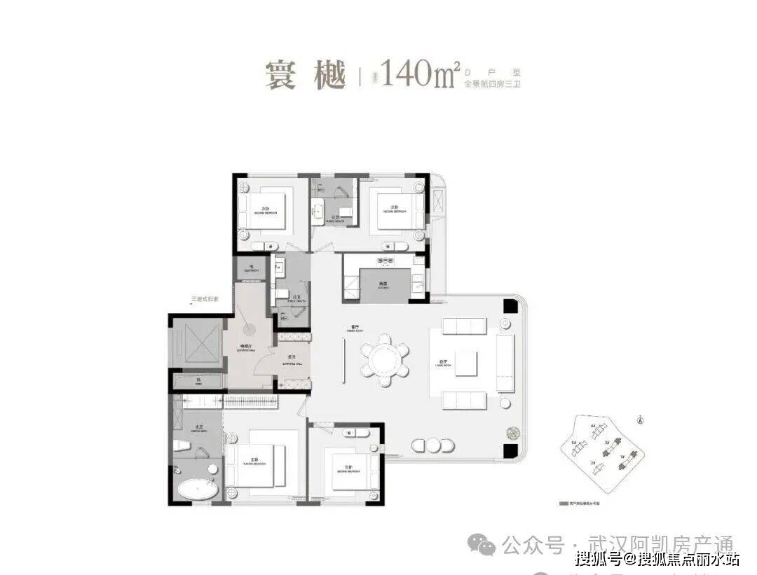 其中建面约140平的方厅户型实现了双套房+超级方厅,让你改善置业就能达到越级的豪宅体验。