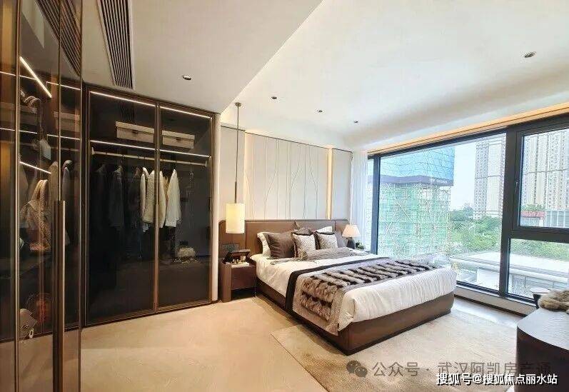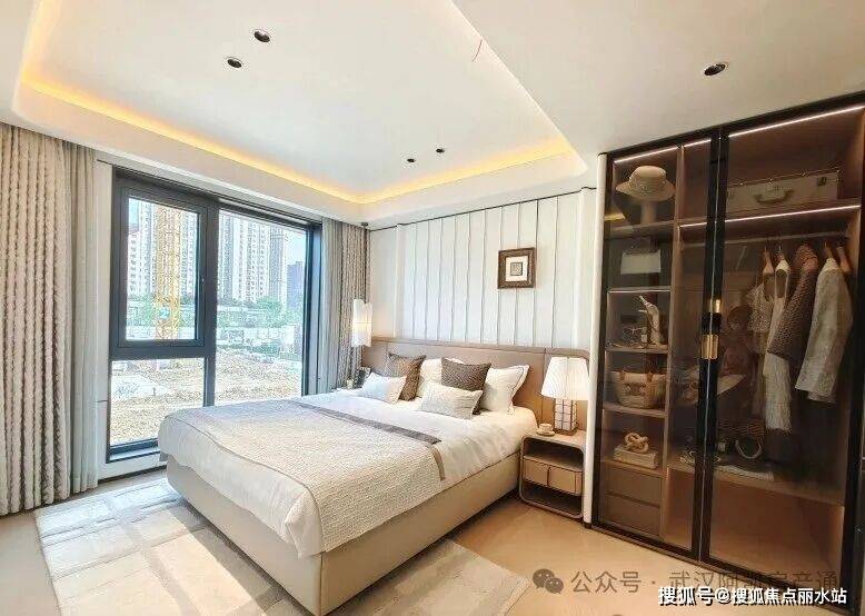 相比较一些楼盘餐客厅双面采光的宽景视野来说,金地大成乐府的这个全景舱户型客厅三面采光,线°环绕视野,将一线城市的顶豪设计带到了武汉改善市场。